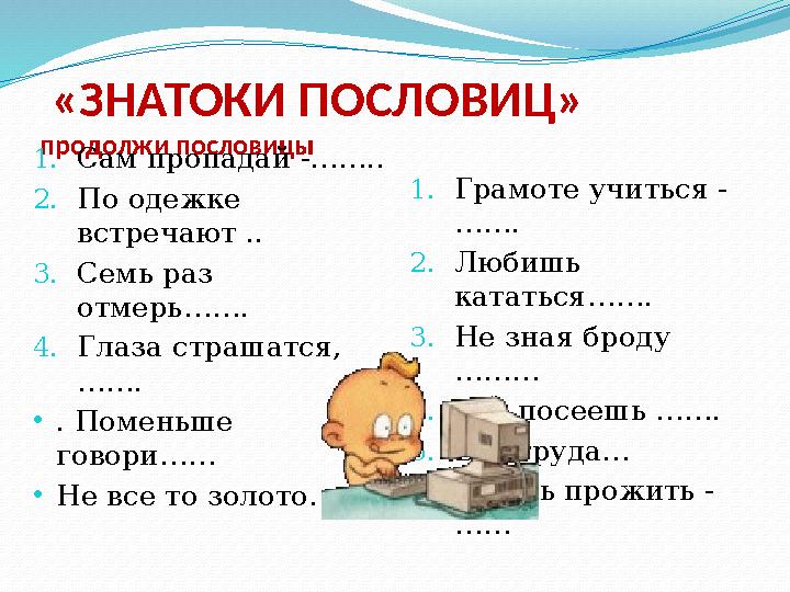 Озаглавьте каждую группу пословиц 52 фотографий