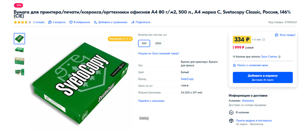 Озон листы а4