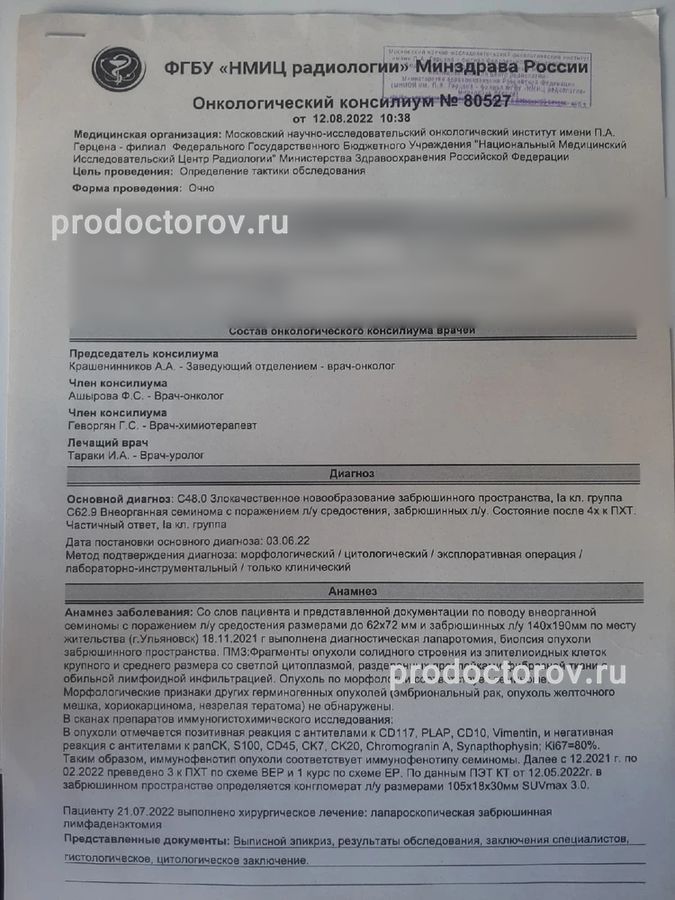 П а герцена онкология