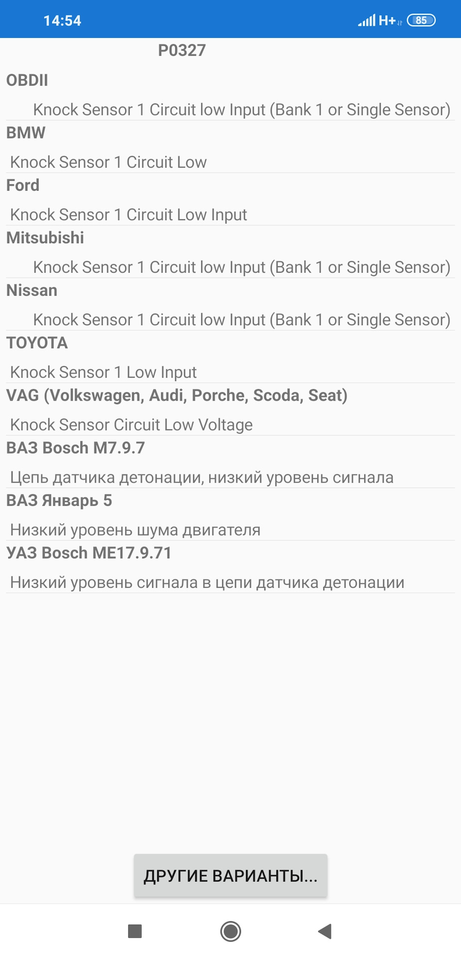 P0327 ошибка ваз