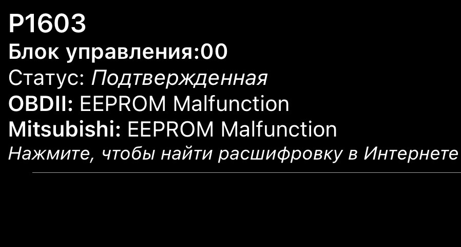 P1603 ошибка тойота