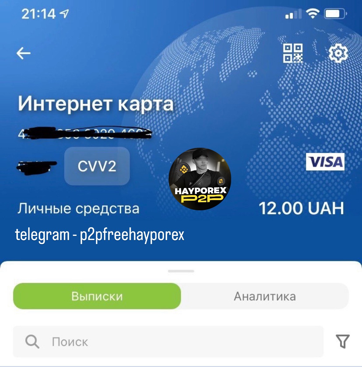 - Бинанс или любая другая P2P платформа с парой USDT/UAh (гривна)