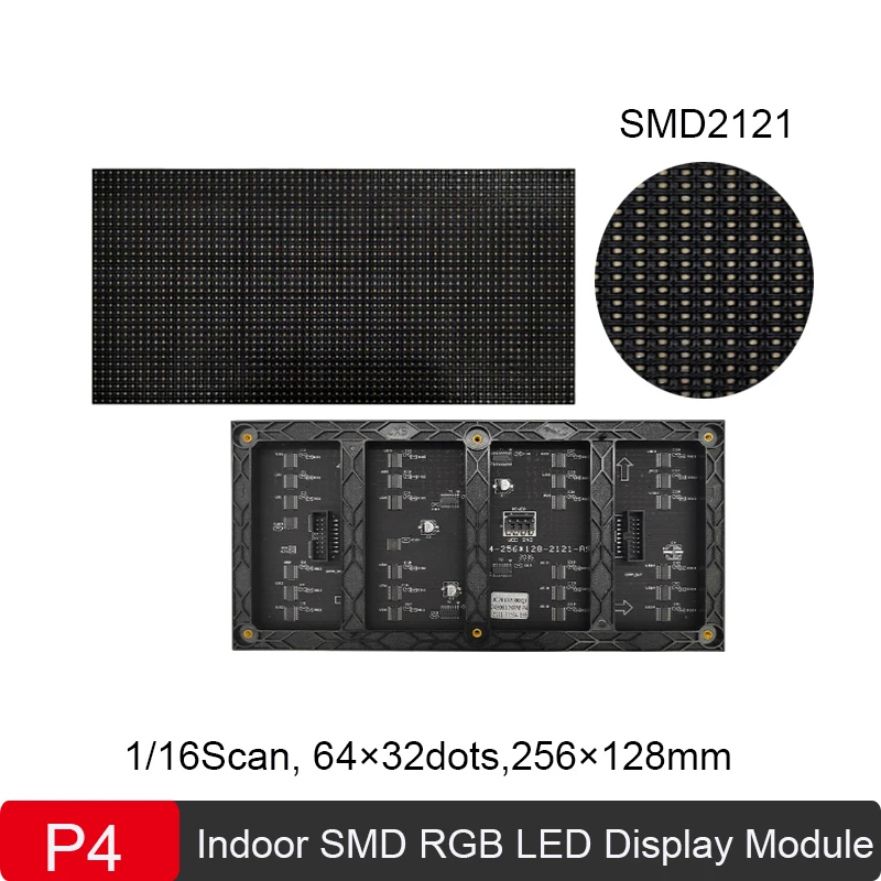 UTJQkjDzOIHere you can buy P4 Indoor RGB LED Screen Panel Module 256*128mm 1/16Scan SMD2121 LED Advertisement Display Module 64*32 pixels 3 in 1 LED Panel with free delivery to your post office.