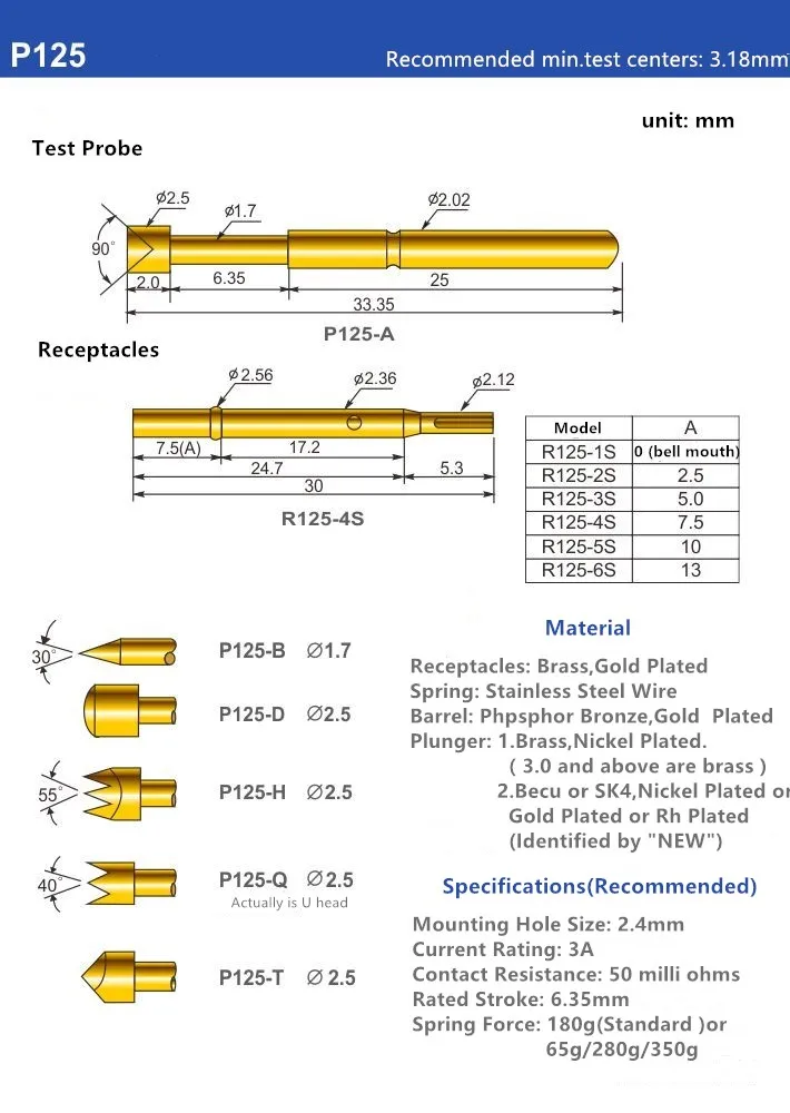 «PA125-E Spring Test Probe Pin Metal Brass Test Probe Length 33.35mm Spring Probe 100/PCS» по лучшей цене на рынке! Всего за 12$ (1140рублей)