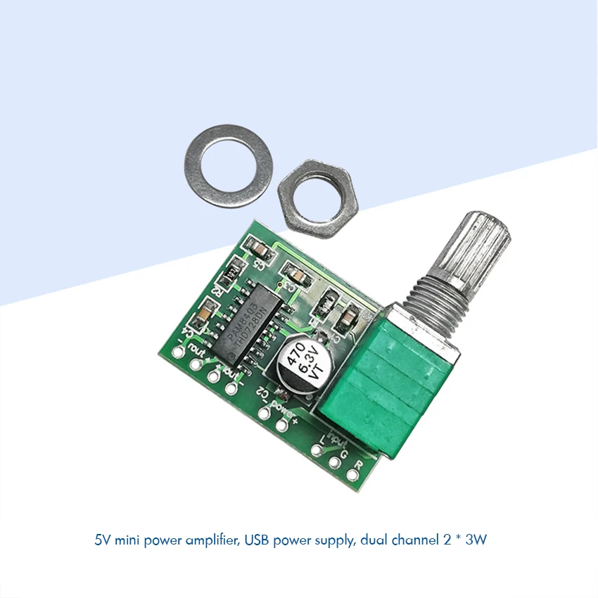 UPcOKuEuHere you can buy PAM8403 Mini Digital Amplifier Board Module with Switch Potentiometer, 5V Dual Channel 2x3W USB Powered Audio Amplifier Board with free delivery to your post office.