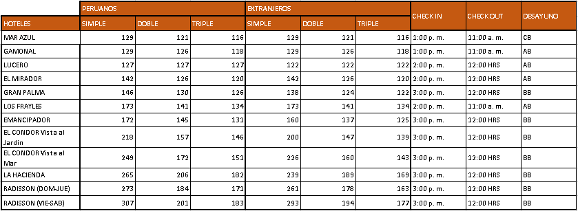 Recojo de Hoteles en Miraflores (Previa coordinación se confirma el horario)