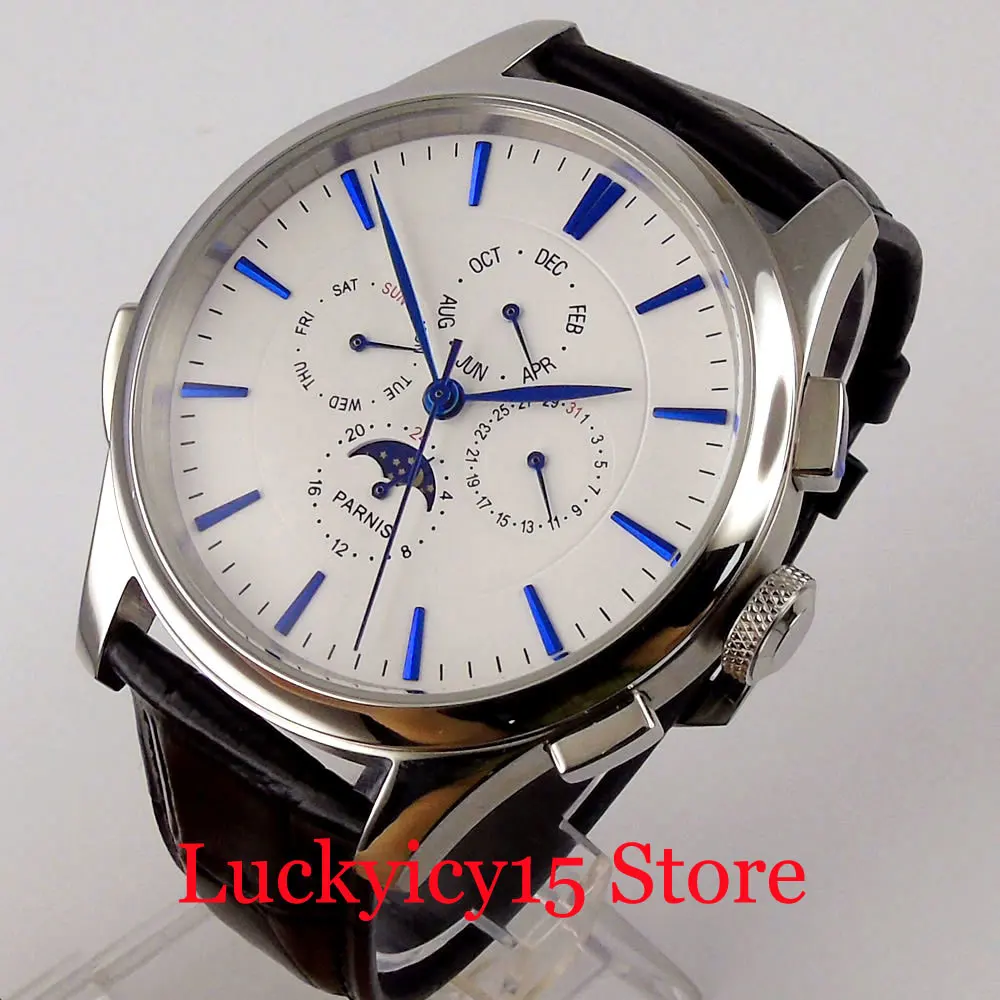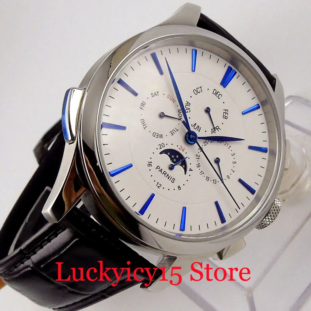 YgiLgYXRHere you can buy PARNIS Multifunctional Automatic Men Watch Date Week Month Function Polished Case Automatic Movement Leather Band with free delivery to your post office.