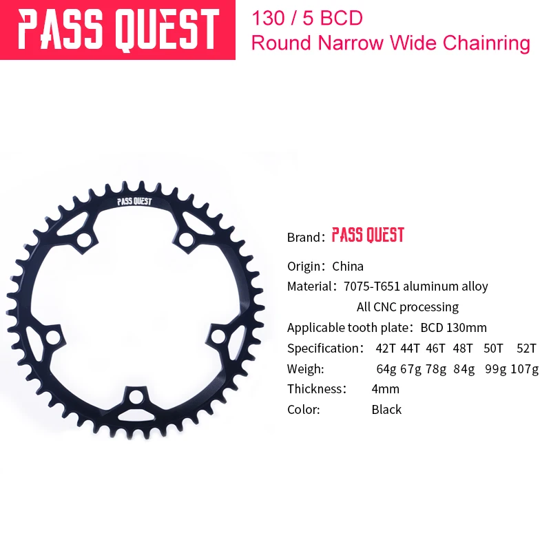 «PASS QUEST 130BCD MTB Round Narrow Wide Chainring/Chain Ring 42T-52T Bike Bicycle Chainwheel/Chain Wheel deore Crankset» по лучшей цене на рынке! Всего за 46$ (4370рублей)