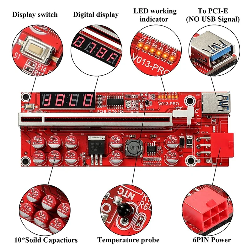 «PCI-E 1X To 16X Riser Card, 10 Capacitors,PCI-E Riser For Bitcoin Litecoin Ethereum Mining ETH,(V013-PRO) A» по лучшей цене на рынке! Всего за 14$ (1330рублей)