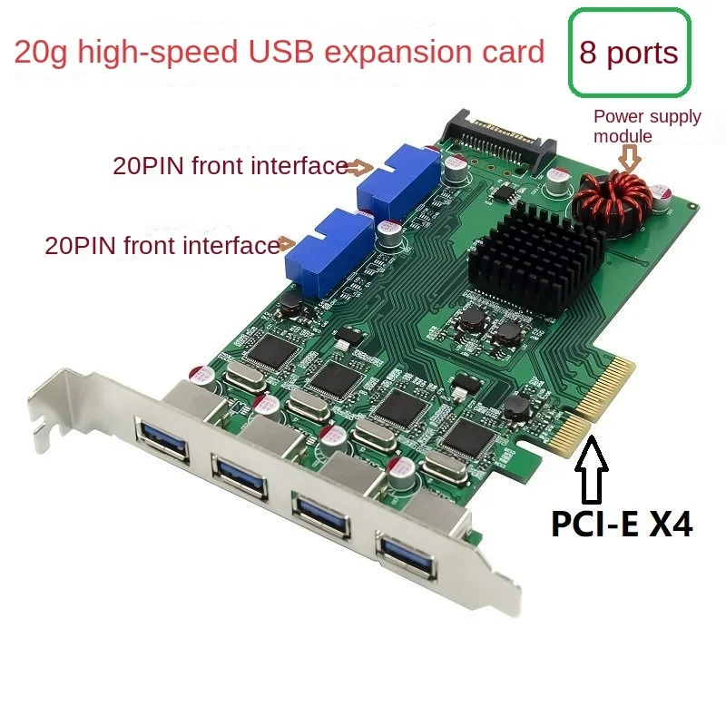 PCI Express PCI-E to USB 3.0 Expansion Card Raiser 8 Ports USB 3.0 Controller SATA Power Independent 4 Channel for Camera Server - Купить с бесплатной доставкой