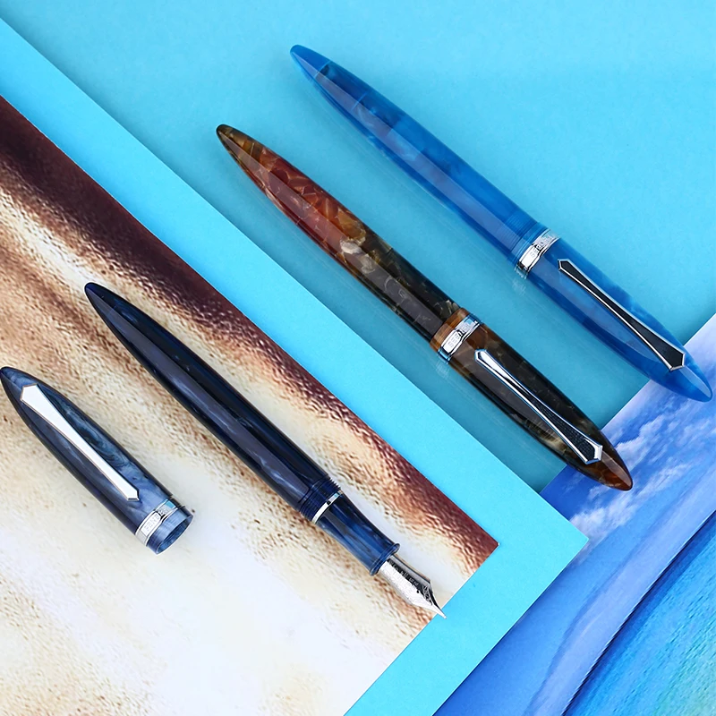 "PENBBS 480 Celluloid Acrylic Fountain Pen Silver Pen Clip Iridium Fine Nib 0.5mm Beautiful Fashion Office Writing Gift Pen Set" * Buy Now Just For 35$