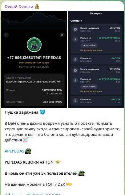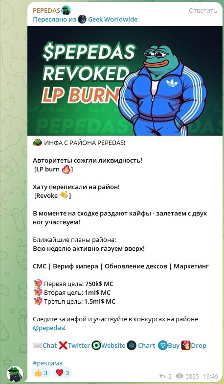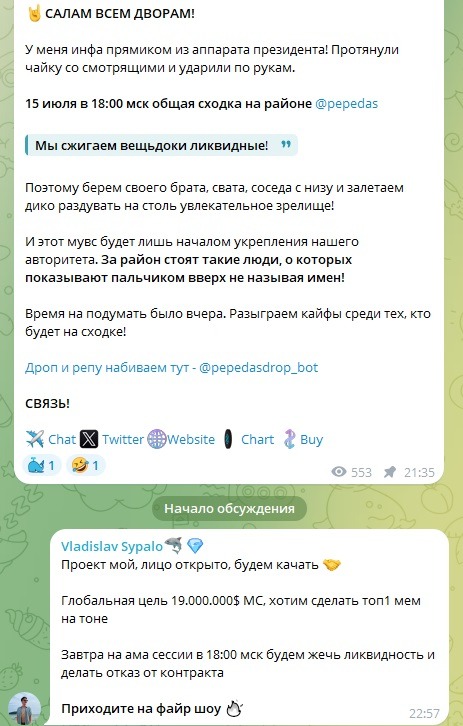 Мы проресерчили все рекламные посты, которые покупал пепедас и наткнулись на этот: