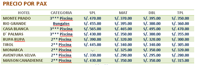 EL OPERADOR puede variar el orden de las excursiones, debido a condiciones climáticas, nivel de los ríos, hora de arribo o partida, por cualquier otra razón relevante, las mismas que garantizarán el mejor desarrollo de viaje en coordinación con los pasajeros.
