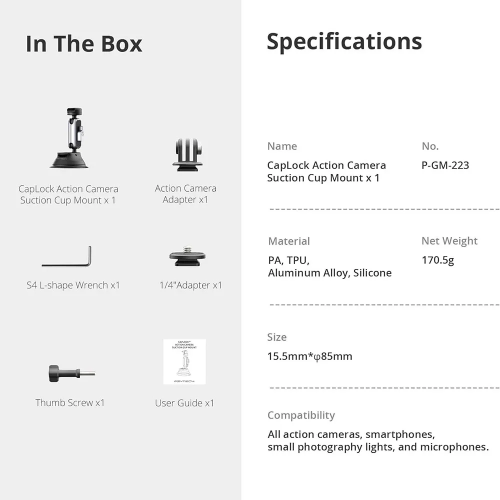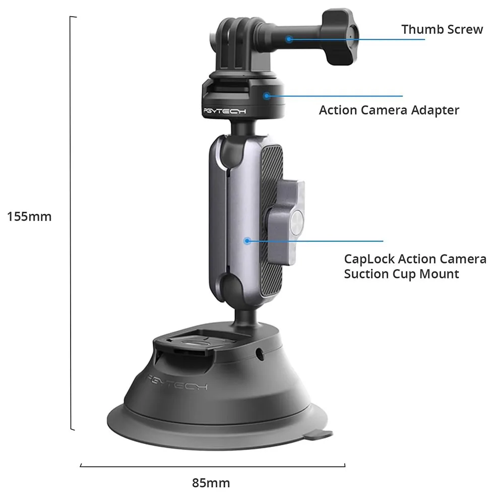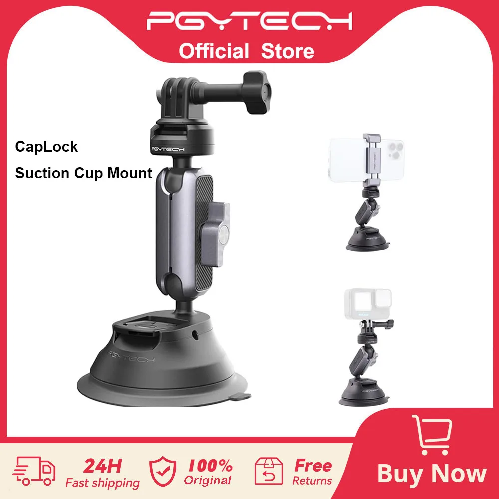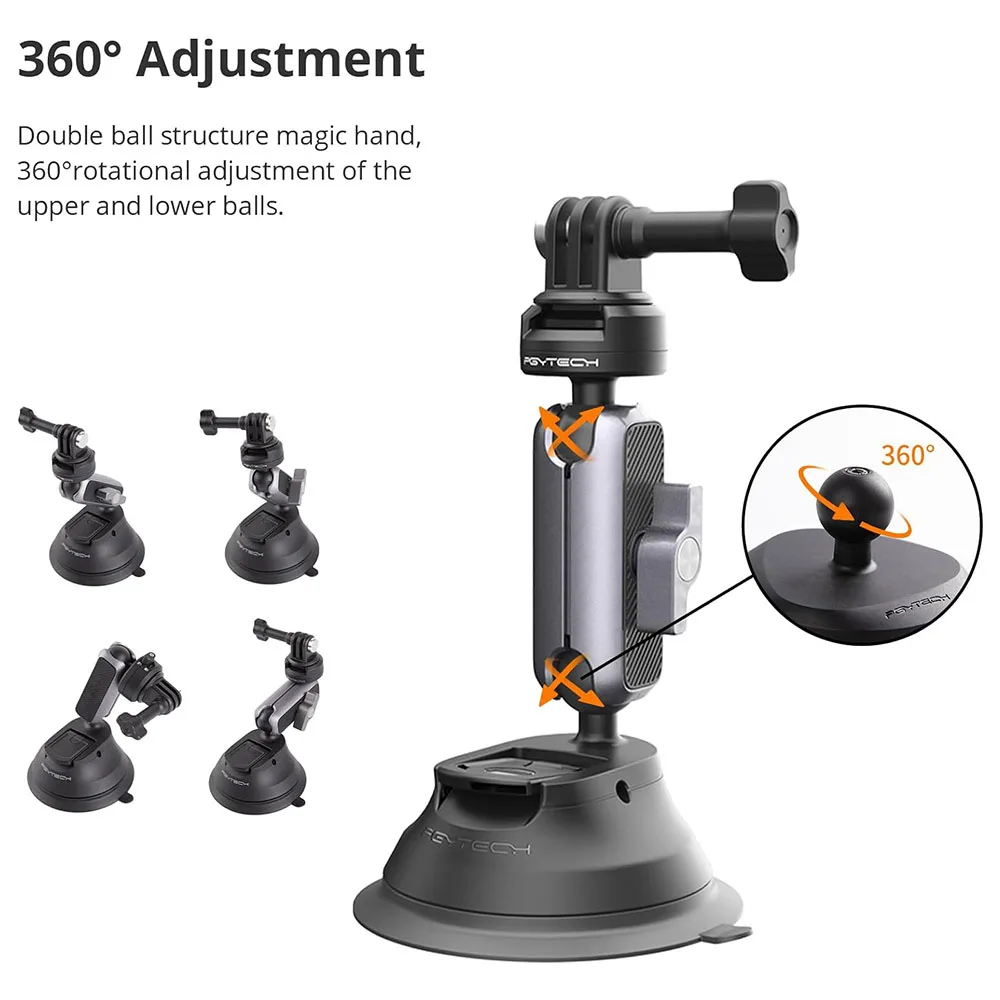 PGYTECH CapLock Suction Cup Mount 360° Rotation Car Mount For DJI OSMO Action POCKET 3 Gopro12/10/9/ With 1/4"- Standard Adapter - Купить с бесплатной доставкой