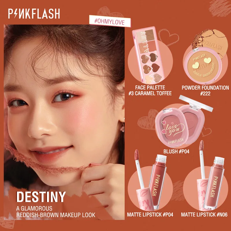 PINKFLASH 5 Pcs Makeup Set Eyeshadow Matte Lipstick Soft Blush Oil Control Pressed Powder Natural Face Cosmetics Kit - Купить с бесплатной доставкой