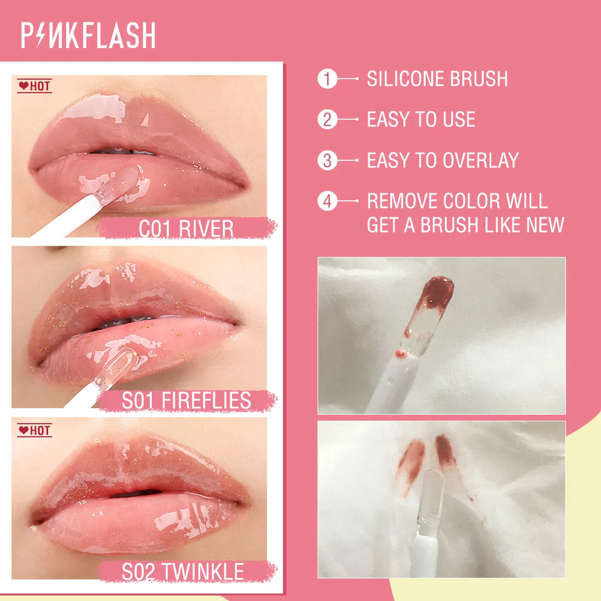"PINKFLASH Shiny Nourish Lipgloss 11 Colors Long-Lasting Glossy Lipstick Waterproof Non-Stick Cup Cosmetic Moisturizing Lip Gloss" * Buy Now Just For 3$