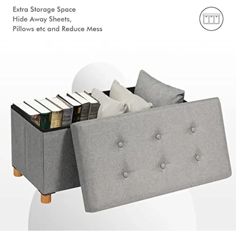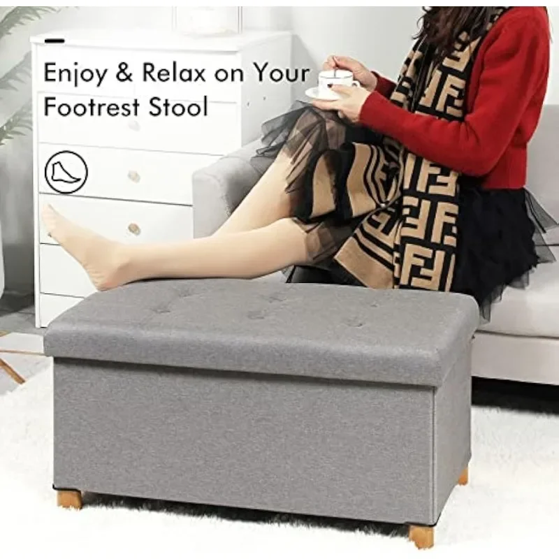 FmAoUZnVrHere you can buy PINPLUS Ottoman with Storage Coffee Table, Grey Footrest-Stool Linen Toy Chest with Tray, Large Storage Bench Foot Rest Ottoman with free delivery to your post office.
