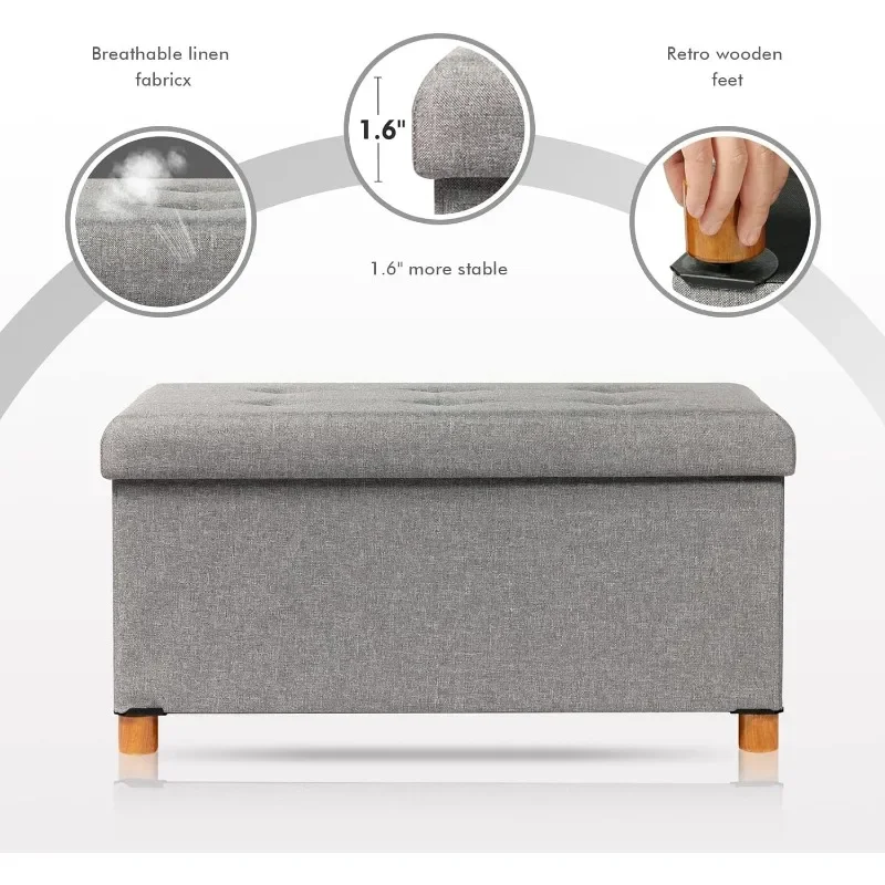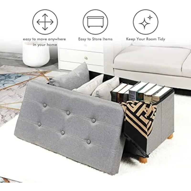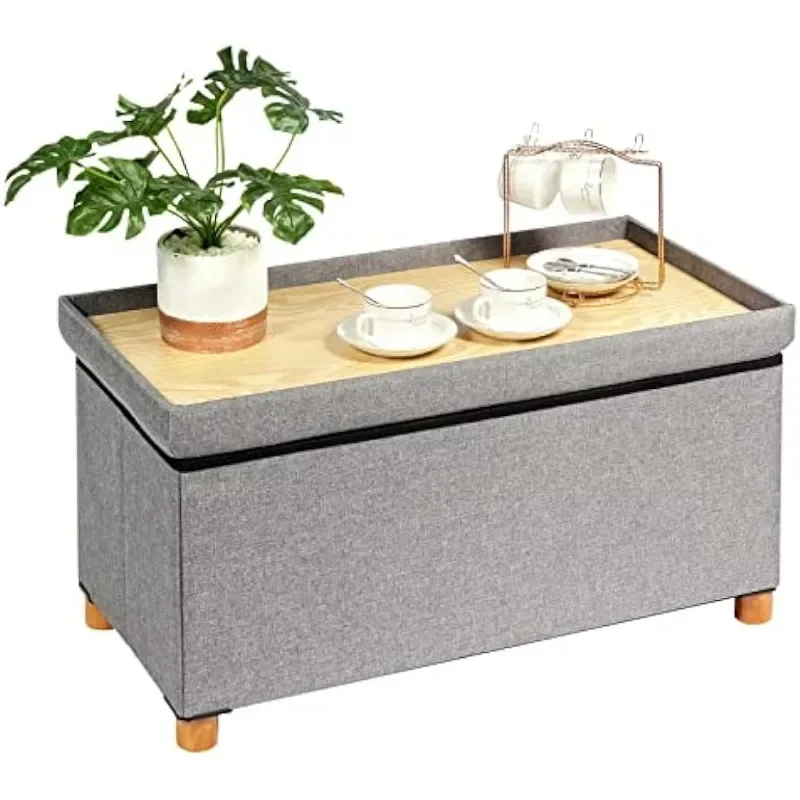 "PINPLUS Ottoman with Storage Coffee Table, Grey Footrest-Stool Linen Toy Chest with Tray, Large Storage Bench Foot Rest Ottoman" * Buy Now With Free Shipping Just For $30