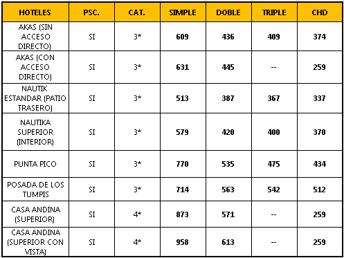 - PRECIOS POR PERSONA // EXPRESADOS EN DOLARES AMERICANOS
