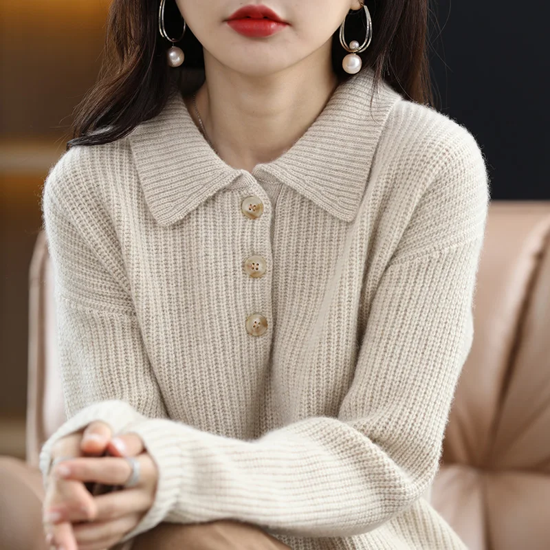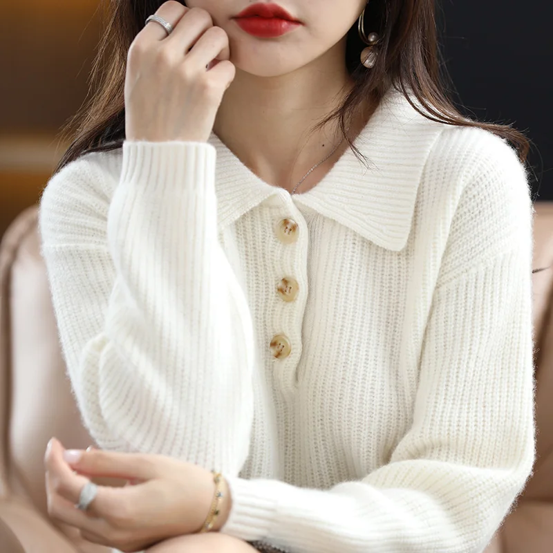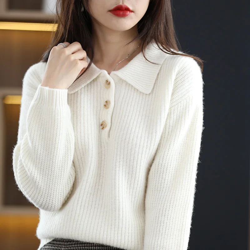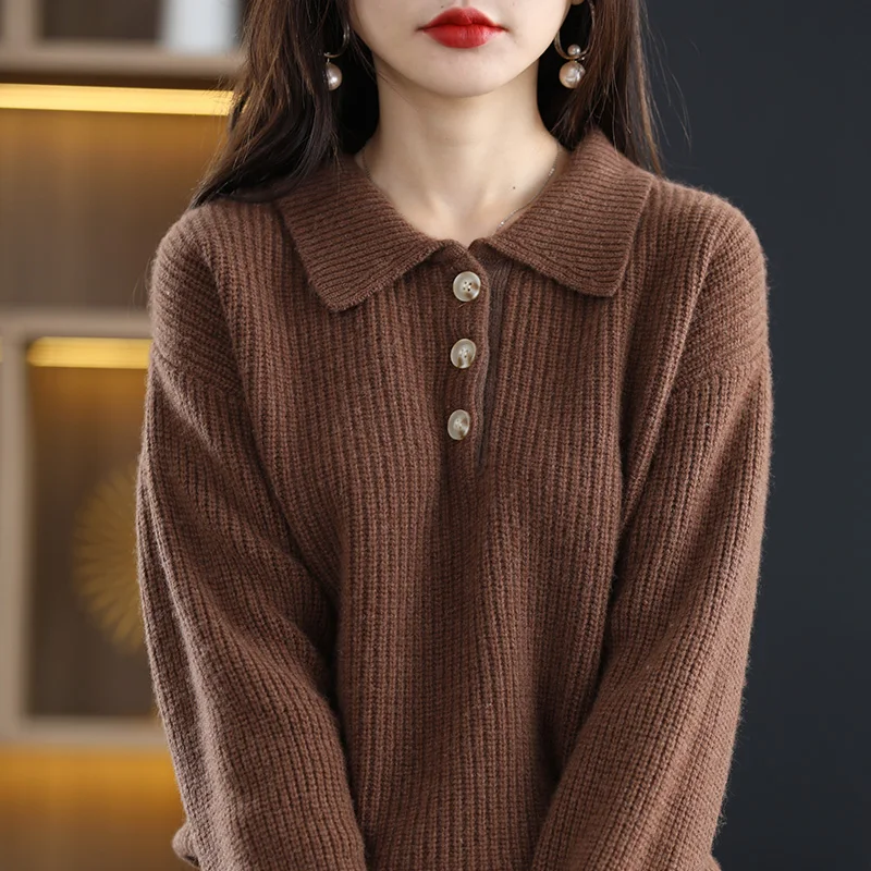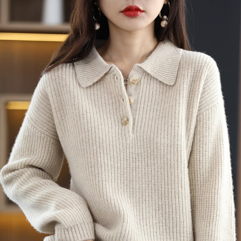 «POLO Lapel 100% Pure Woolen Sweater For Women New Autumn/Winter Thickened Pullover Solid Color Cashmere Sweater Knit Base» по лучшей цене на рынке! Всего за 42$ (3990рублей)