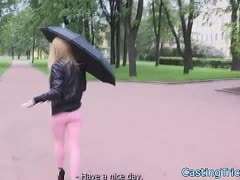 Abwechselnd bläst und bumst die private Blondine beim Casting