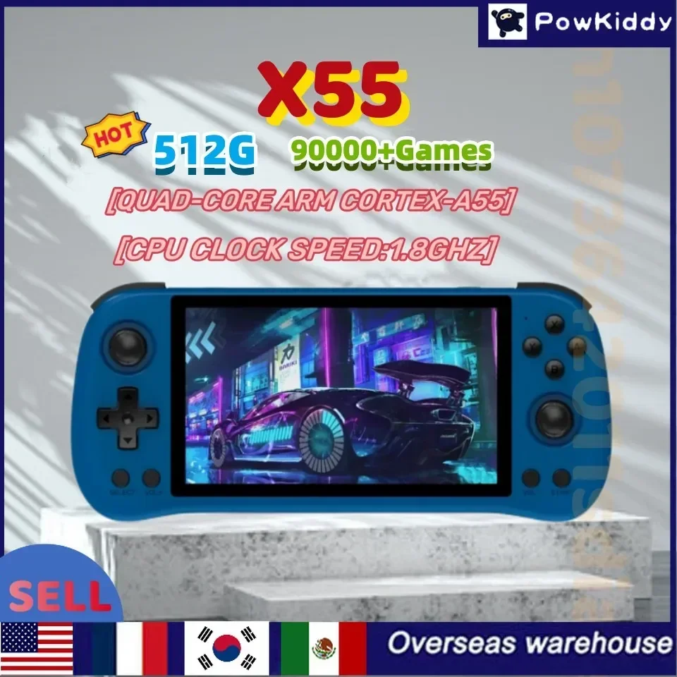 FUTGDEOHHGHere you can buy POWKIDDY X55 Handheld Game Console 5.5 INCH IPS Screen RK3566 Open-Source Linux System 512G 90000Games 4000 MAh TV HDMI LPDDR4X with free delivery to your post office.