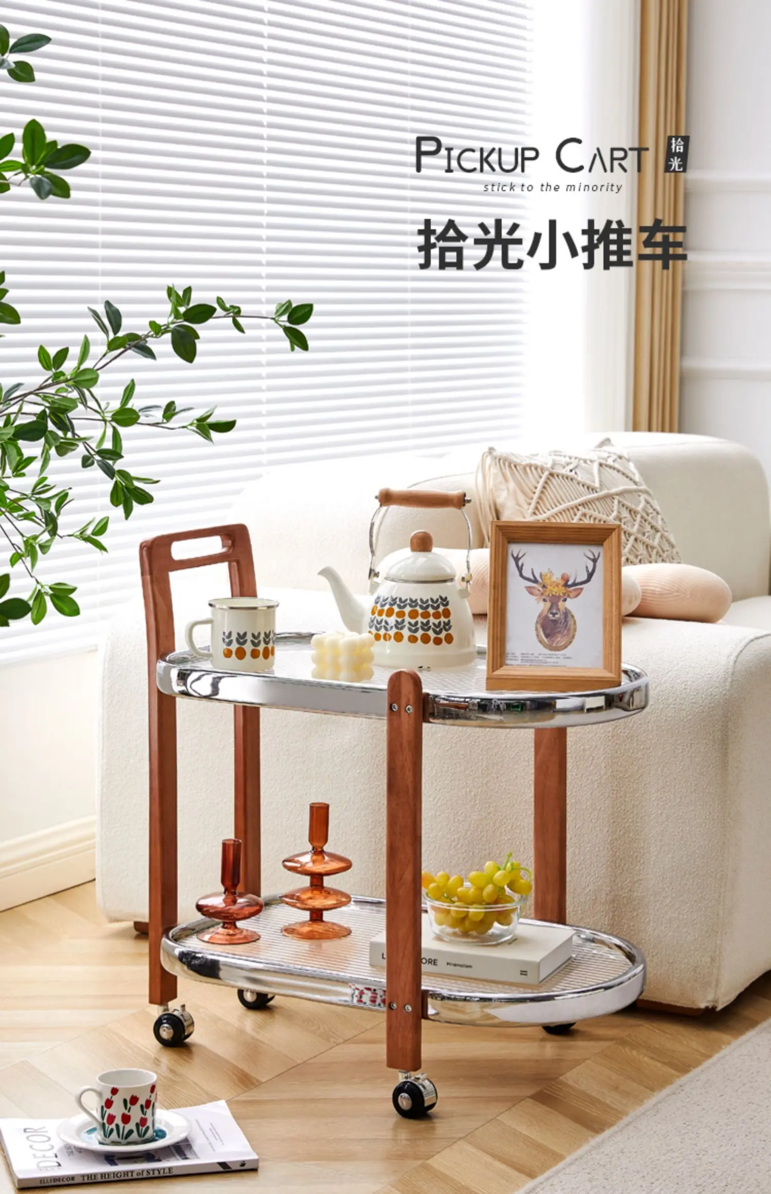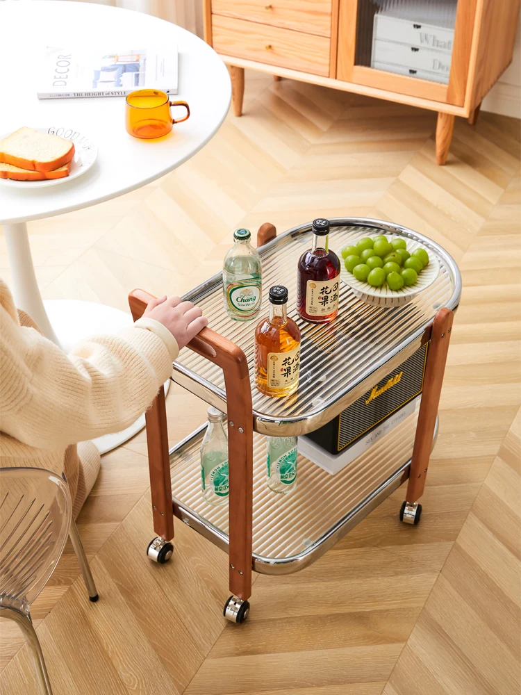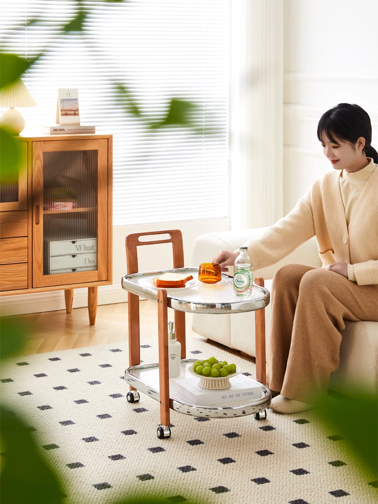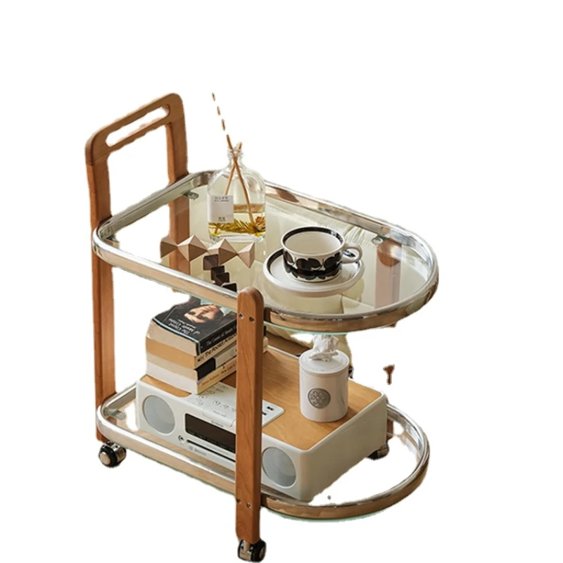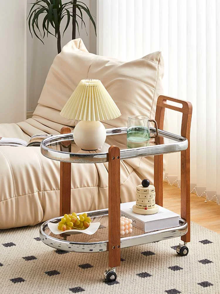 "PQF Solid Wood Movable Trolley Sofa Side Table Storage Rack with Wheels" * Buy Now With Free Shipping Just For $181
