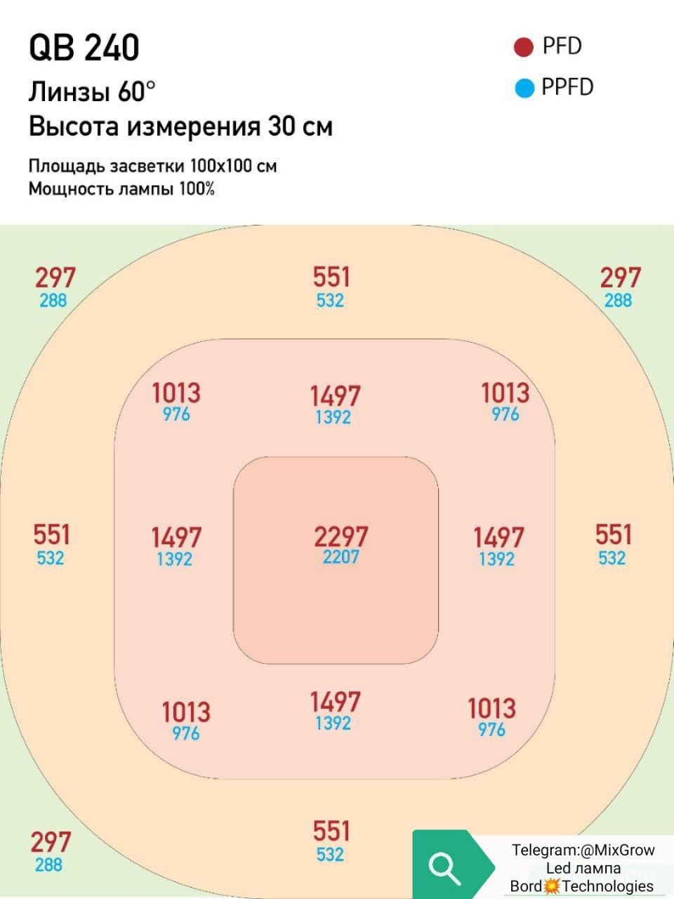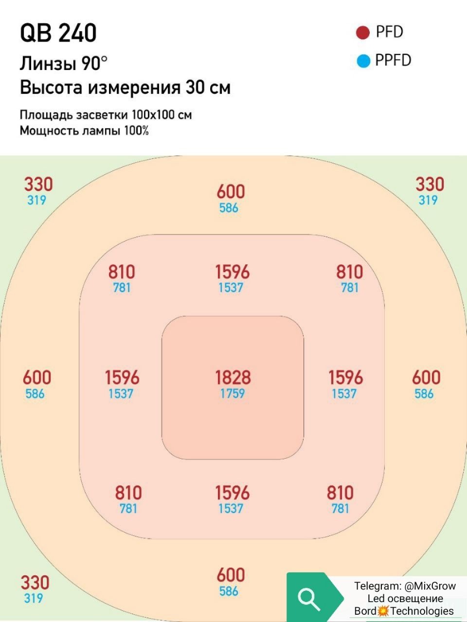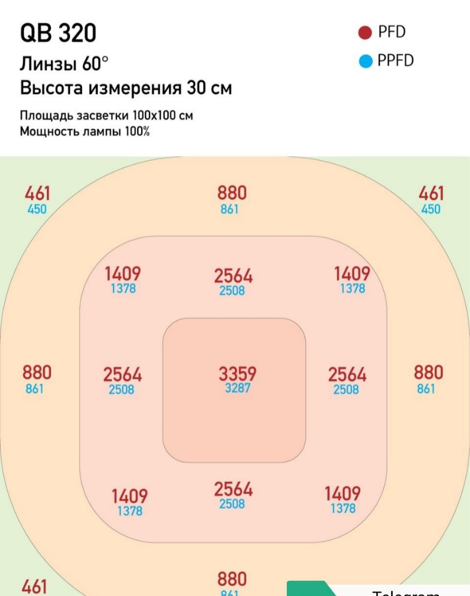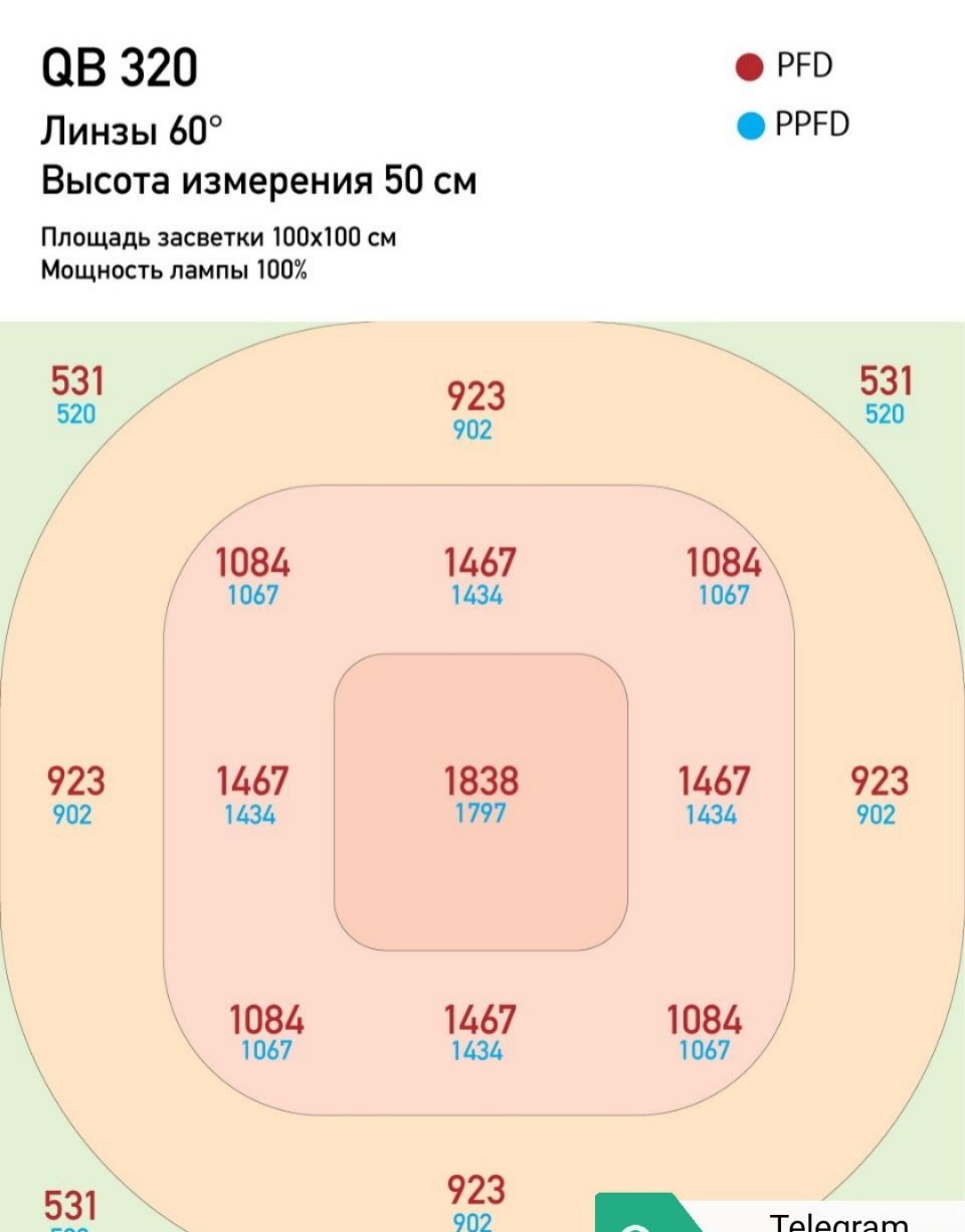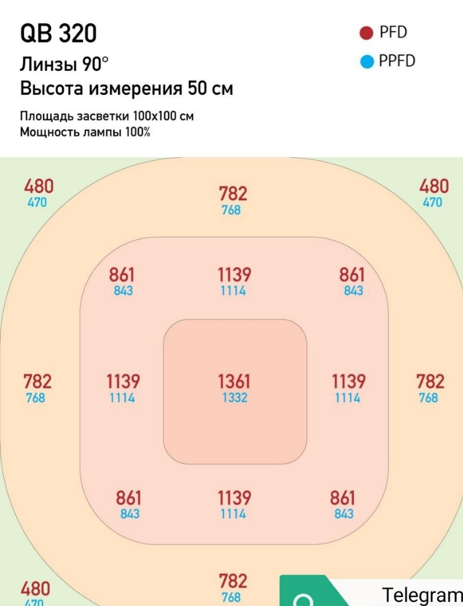 Результаты тестирования показали что q/b 80 w не уступает обычным классическим бордам 120 w., а то и превосходит, пар карта говорит сама за себя, значение PPFD превосходят на 30-50%, из-за фокусирующих линз свет пробивает до нижних соцветия, а это плотные и маслянистые шиши