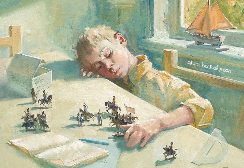Как хорошо с мороза вбежать домой, бросить в прихожей заснеженный портфель и пальтишко, погреть замёрзшие руки под горячей водой в ванной и сесть за стол на уютной кухне, где светло и тепло, и так вкусно пахнет. И мама наливает душистый чай в большую чашку с цветочками, это его, Костика, чашка, и накладывает на тарелку румяные шанежки с пылу с жару—ждала мама своего сыночка. А за окном —метель, синие сумерки спускаются на заснеженный город. Ничего, пускай спускаются—дома светло и тепло! И под ногами уже ползает Мишутка со своей любимой машинкой.