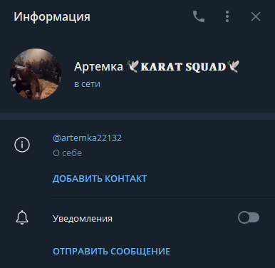 3. Всегда обращайте внимание где написан юзернейм, он должен находится обязательно в поле "Имя пользователя" , скамеры начали пользоваться невнимательностью и делают точные копии ТГ аккаунта, только Имя пользователя вставляют в поле "О себе", в примере ниже поле "О себе" заполнено, "Имя пользователя" верное, соответственно дальше мы копируем имя пользователя и смотрим на репутацию в чате.