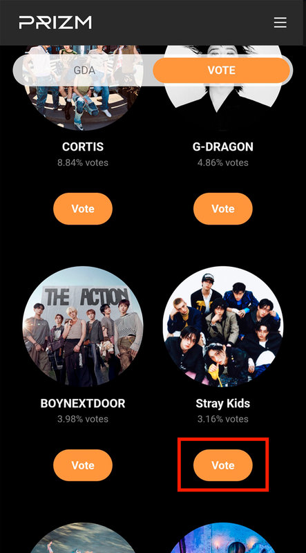2. Пролистните еще чуть вниз и найдите Stray Kids. Нажмите на "Vote" и затем просмотрите небольшую рекламу.