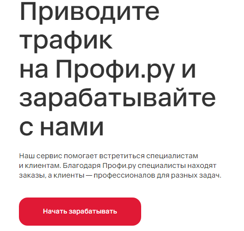 Да, сервис предлагает реферальную программу. Вы приводите трафик (новых пользователей) на сайт ПРОФИ.РУ, и если клиент совершает заказ, вы получаете деньги.