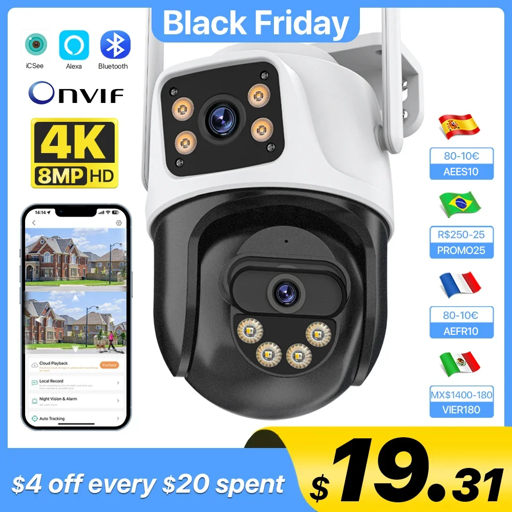 AmzggHOGHere you can buy PTZ Camera 4K 8MP Dual Lens Dual Screen Wifi IP Camera 4MP HD Security CCTV Video Surveillance Camera Auto Tracking iCsee P2P with free delivery to your post office.
