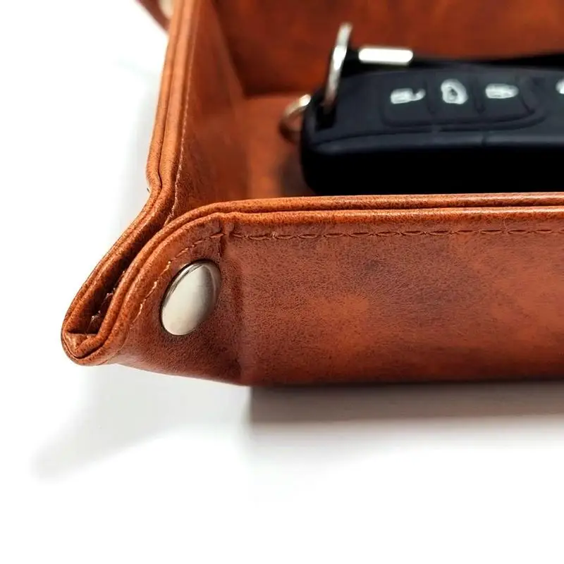 PU Tray Keychain Desktop Storage Organizer Catchall PU Leather Tray Portable Leather Snap Tray Sundries Box Desktop Holder Box - Купить с бесплатной доставкой