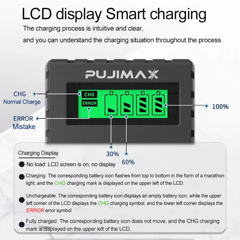 KPaTuKekДолго искали PUJIMAX 4 Slots Smart Battery Charger LCD Display For 1.2V AA/AAA Ni-MH/Ni-Cd Rechargeable Battery Fast Charging Tool Wtih Cable, но не могли найти? Предоставляем вашему вниманию PUJIMAX 4 Slots Smart Battery Charger LCD Display For 1.2V AA/AAA Ni-MH/Ni-Cd Rechargeable Battery Fast Charging Tool Wtih Cable по лучшей цене на рынке!