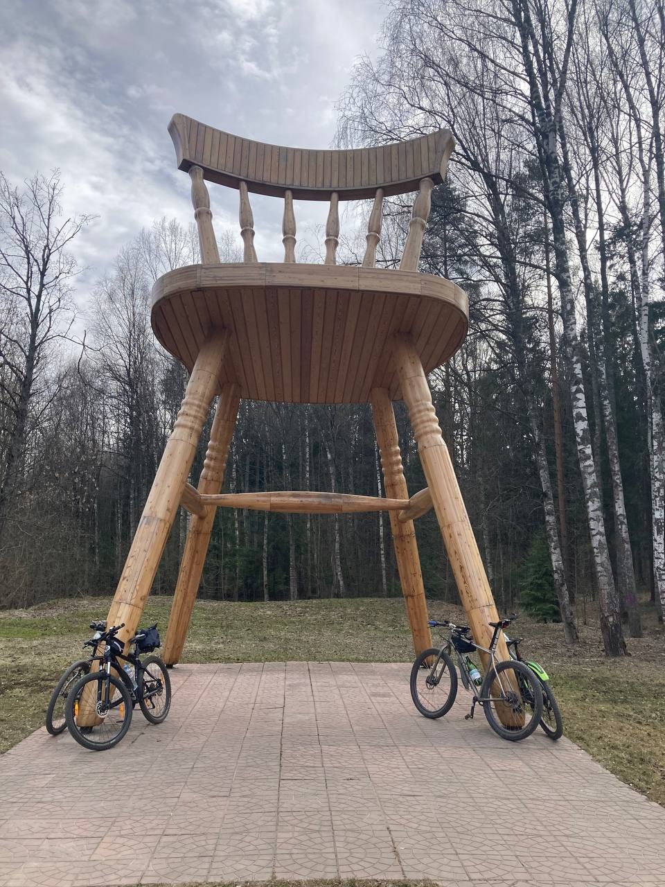 От Ленина двинули обратно через мост в Дубну. По дороге приняли решение пообедать и потом заехать посмотреть гигантский стул.