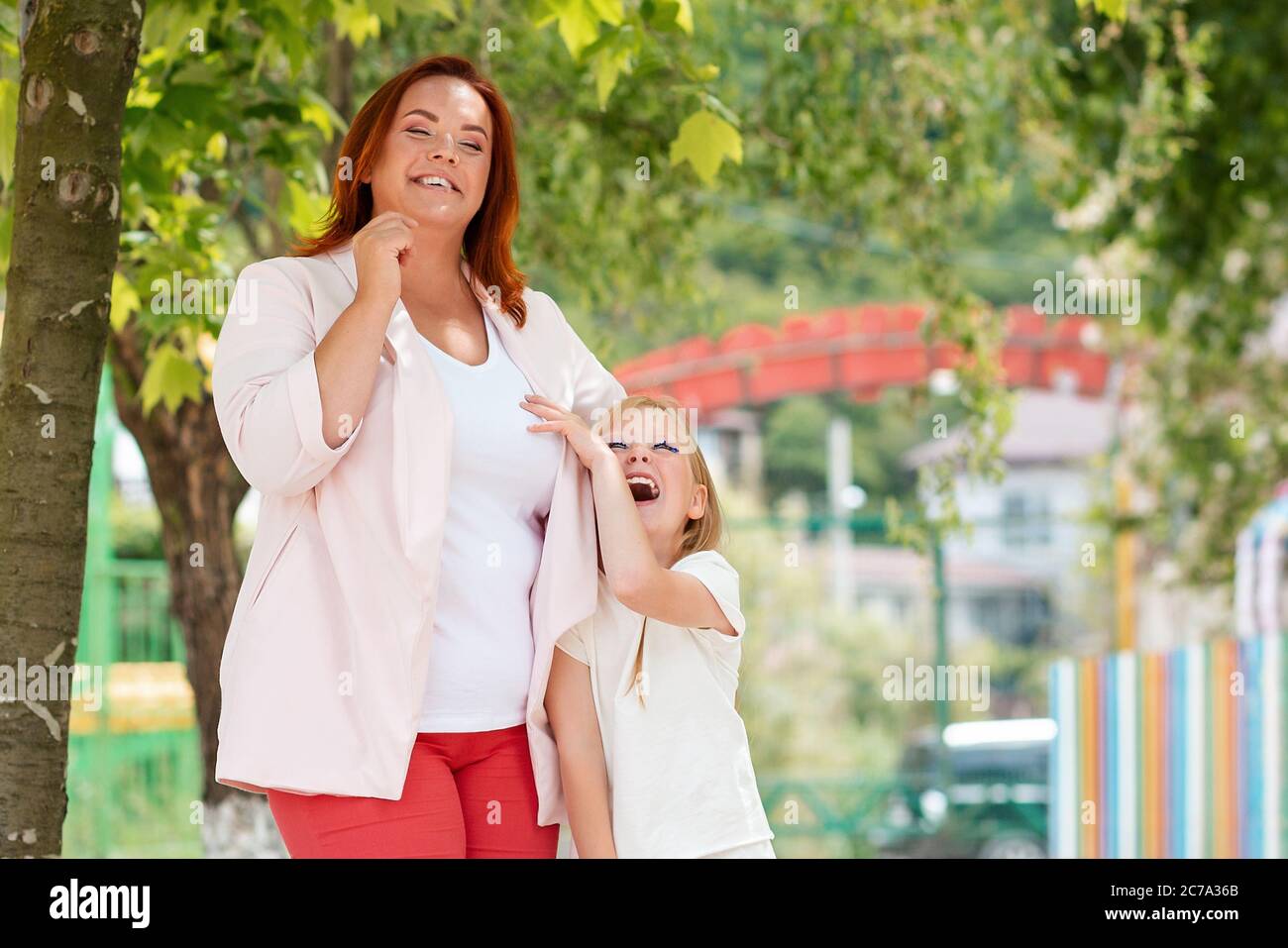 Padre e figlia dai capelli rossi giocano insieme a un . . .