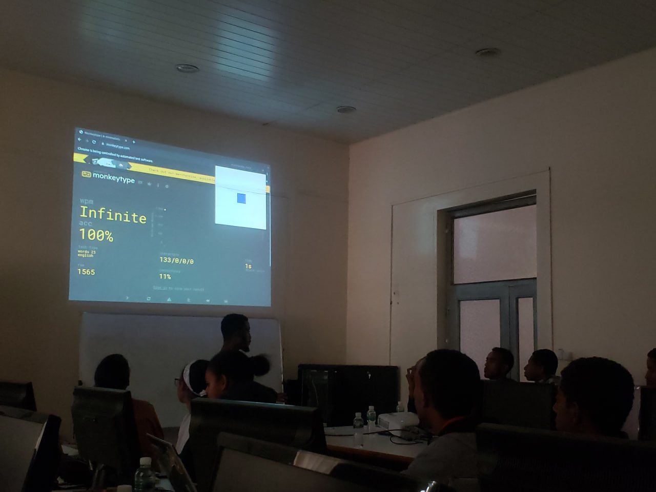 The third & last workshop of our afternoon was led by Eyosias, who focused on the Internet of Things(IoT) using Processing. He showed how Processing can be connected to the internet using libraries like Selenium, which allows for web automation. To demonstrate this, Eyos set up a code-along with the aim of helping participants develop a Processing program that would break MonkeyType's wpm limit. We were successful in breaking the limit, showcasing how powerful Processing is for web automation and how it can be used to control devices and automate tasks, making it a valuable tool for any project involving IoT.