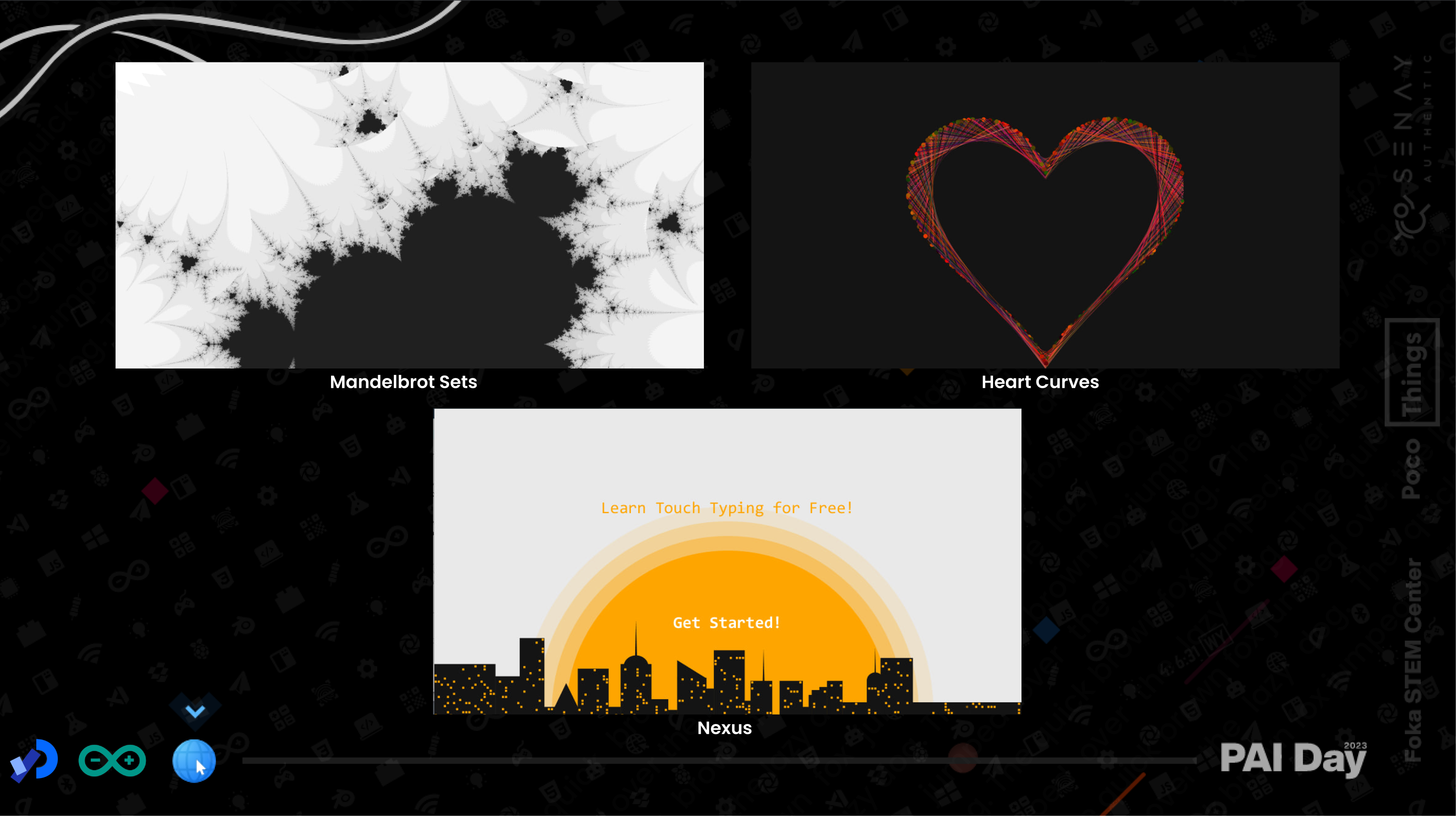 The Showcase session of PAI Day was a much-anticipated part of the event, promising participants a chance to experience a variety of projects created with the Processing. From beautiful visualization projects like Heart Curves and Mandelbrot Sets to complex projects that combined colorful & beautiful graphics, smooth ๐ animations with logic to develop games that featured a sleek and modern design like Nexus (a typing game) and a remake of the famous game 2048. Abel's session was a great opportunity for us to see firsthand the versatility of Processing and the potential it has in various fields.๏ปฟ