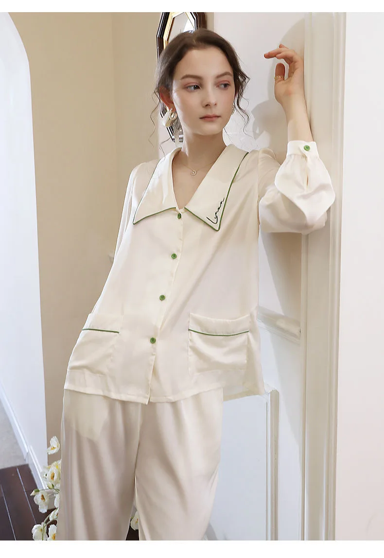 "Pajamas - Piece Loose High Grade Sense French Retro Homewear Set Long Sleeve 2022 Spring Women New Style Two Polyester lingerie" * Buy Now Just For 22$
