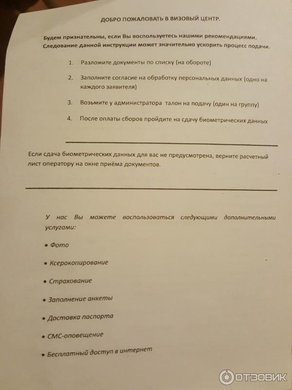Пакет документов на визу