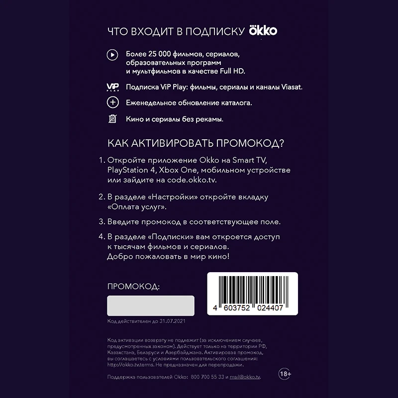 Пакеты окко что входит