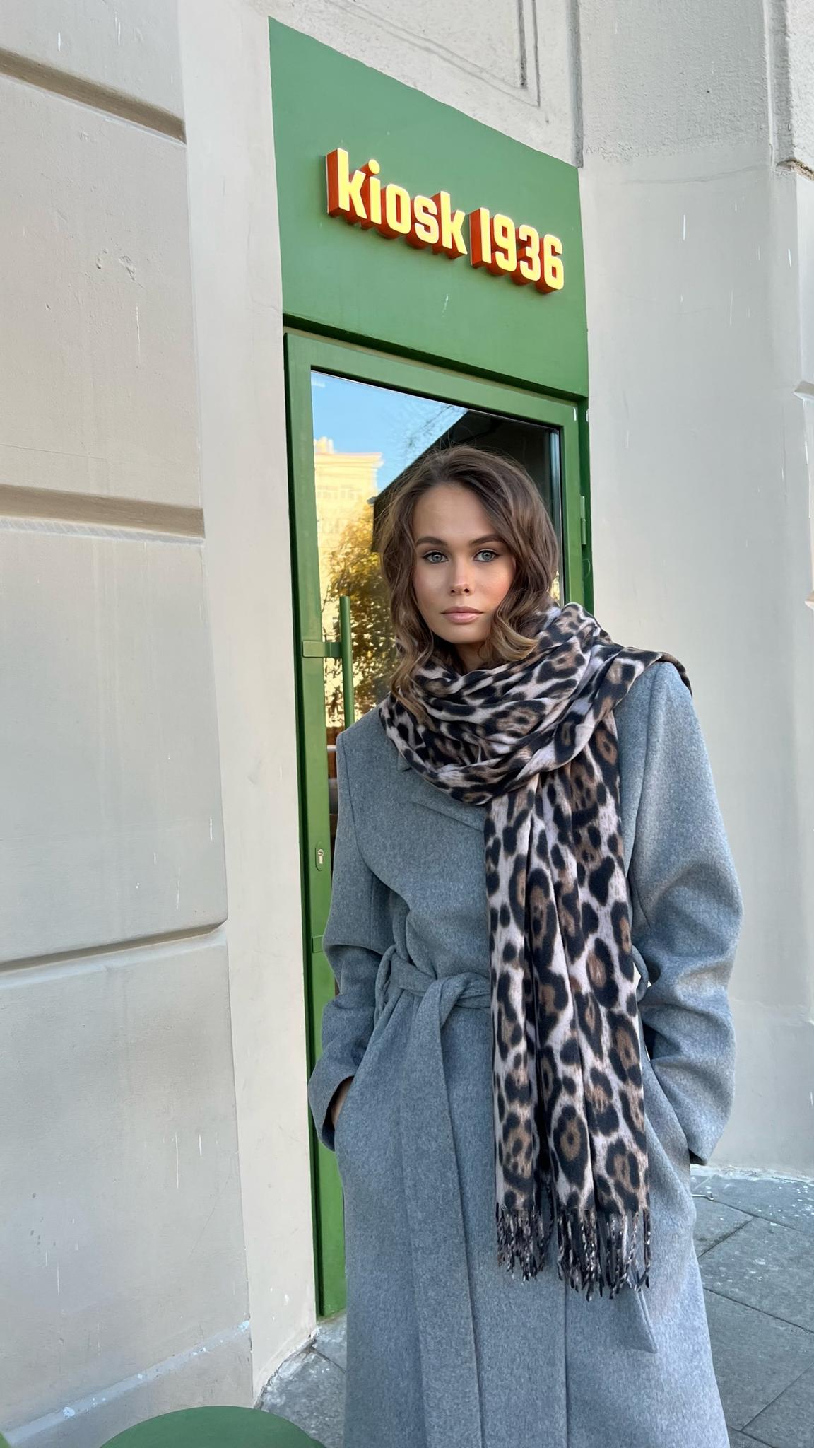 Палантин с серым пальто