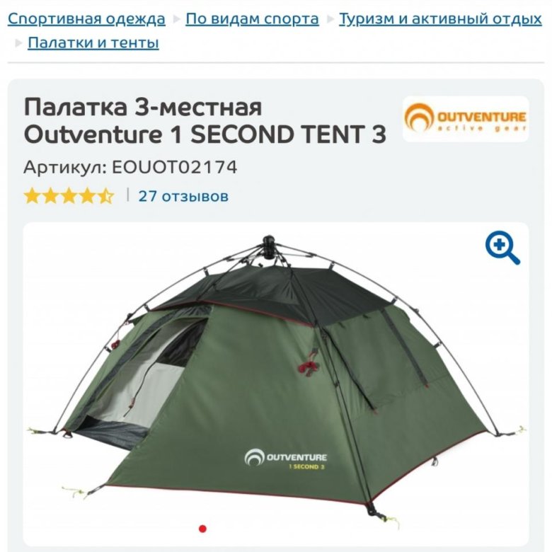 Палатки outventure 1 second