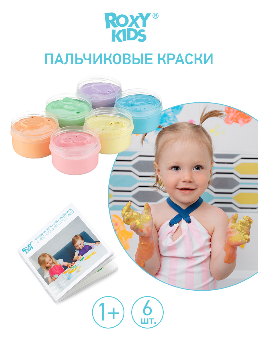 Пальчиковые краски для малышей от 1-го года 7 цветов + 3 . . .