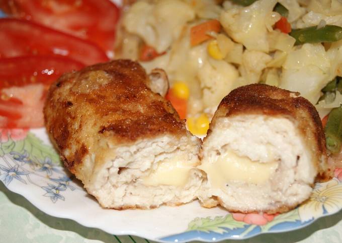 Из картофельной массы сделайте небольшие лепешки . Положите в середину по брусочку сыра . Шаг 8: Сформируйте из картофеля палочки, облепливая со всех сторон сыр .