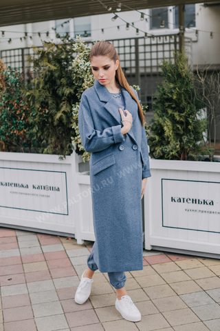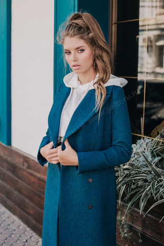 Голубое Пальто С Воротником