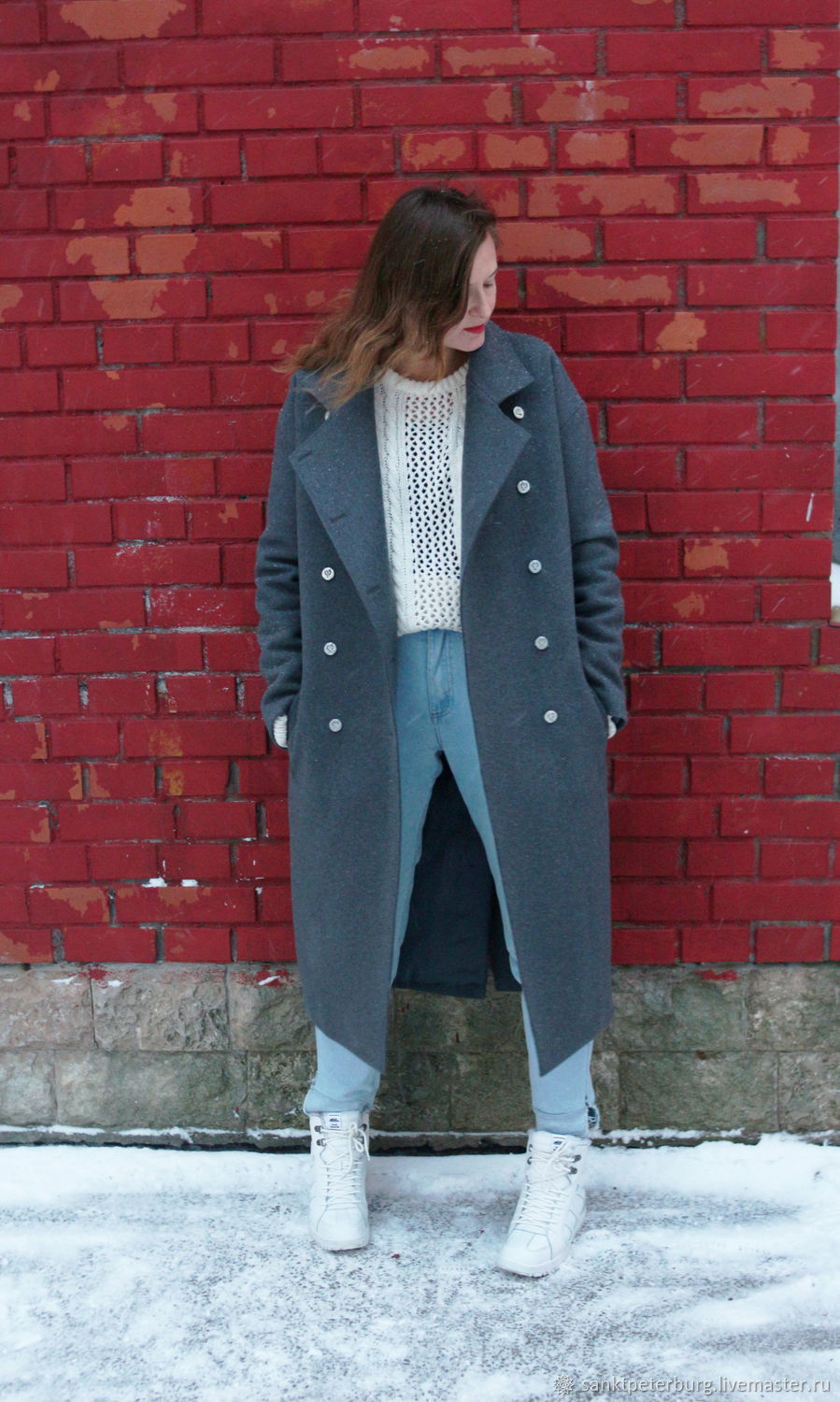 Пальто С Джинсами И Кроссовками Женщинам Фото
