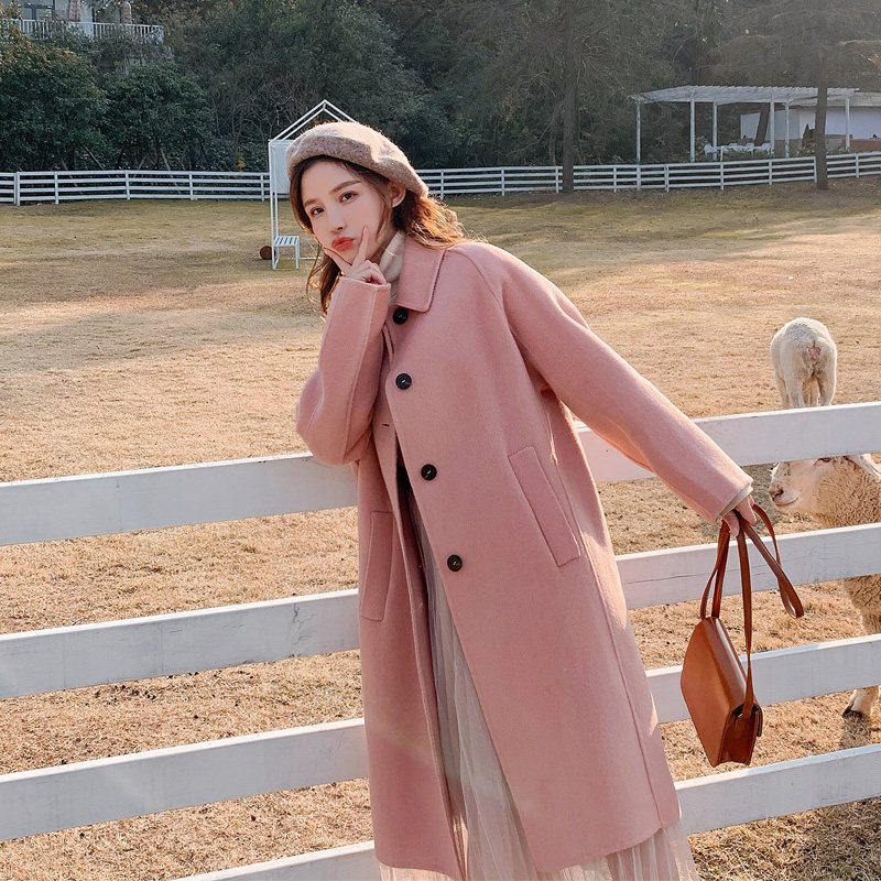 Женский Драповое Пальто Воротник Стойка