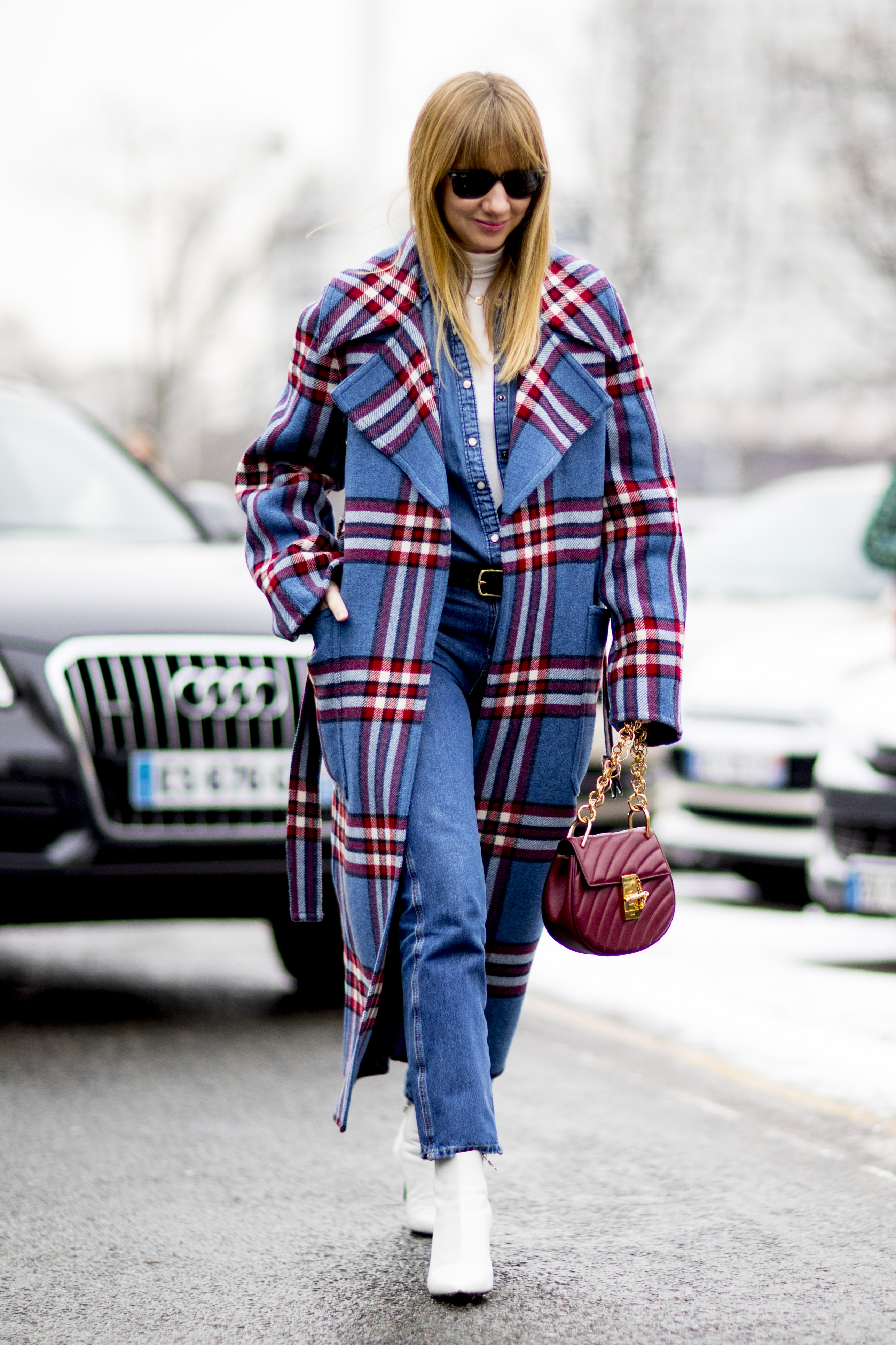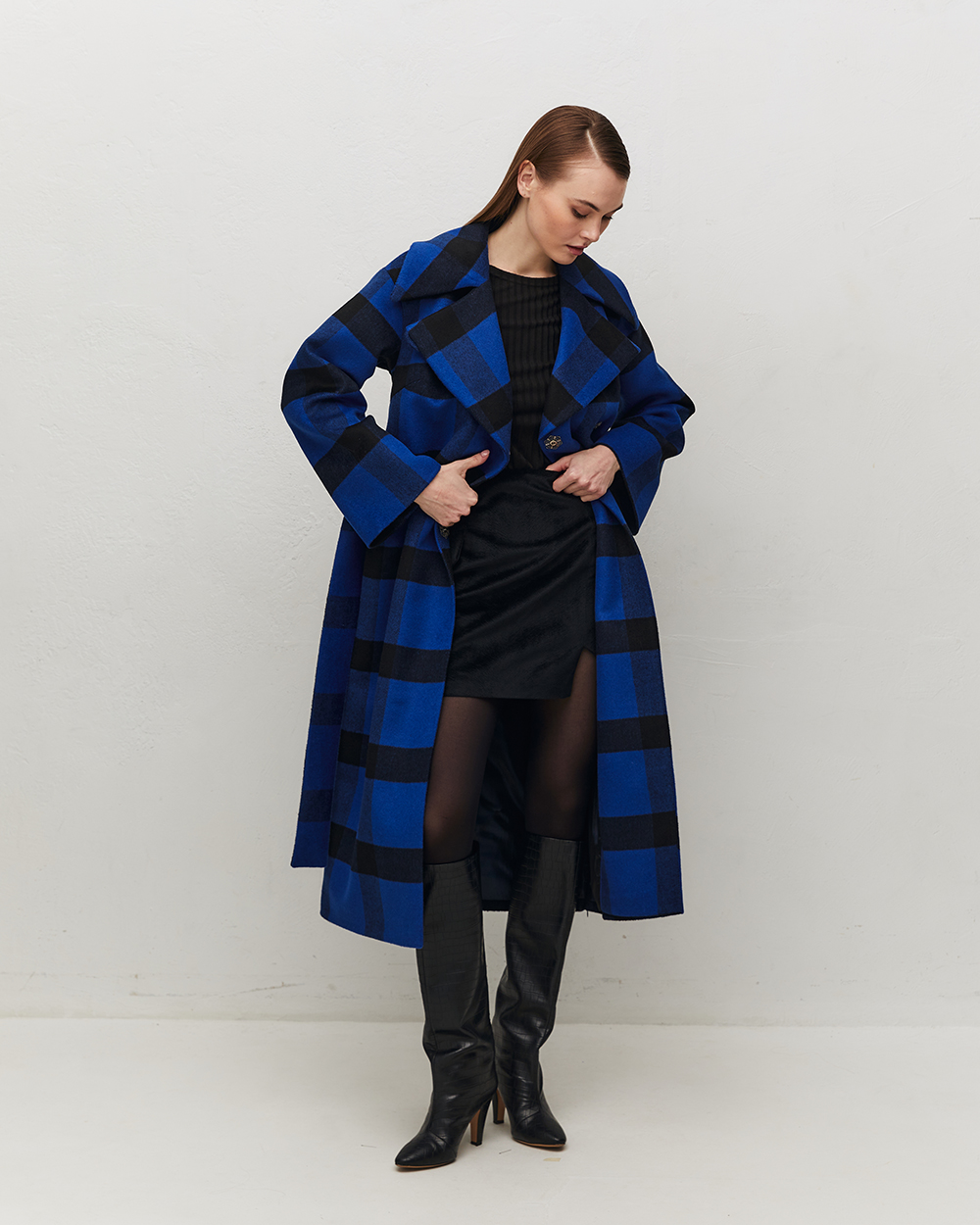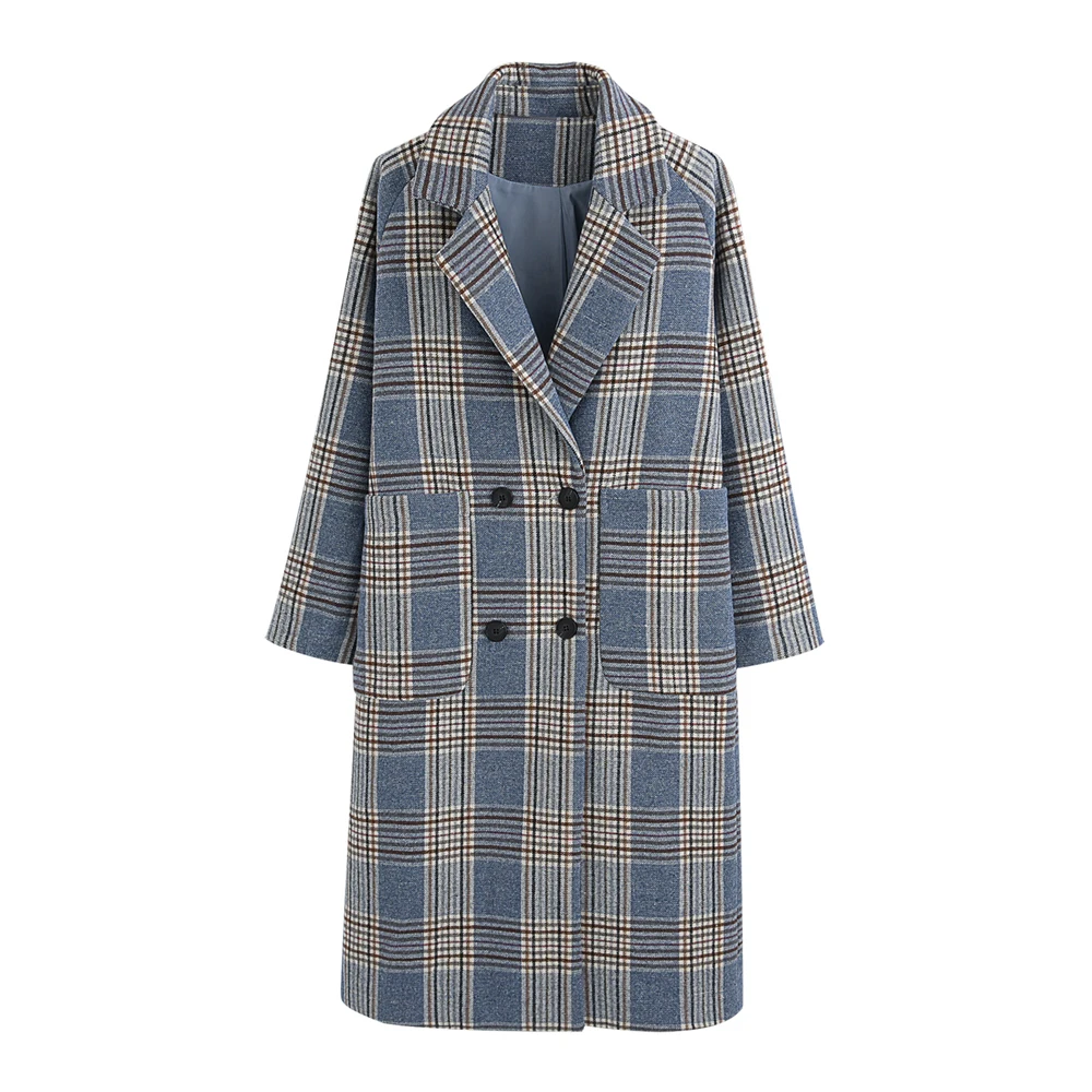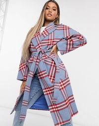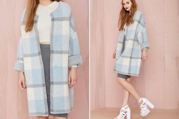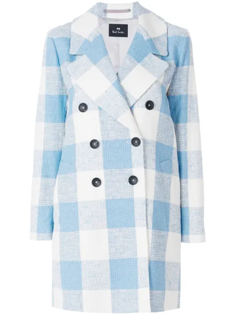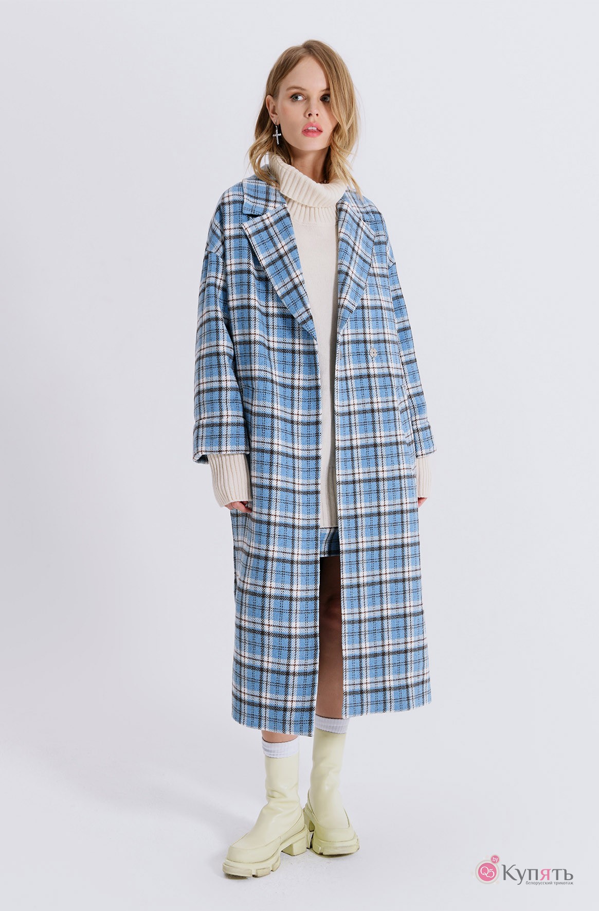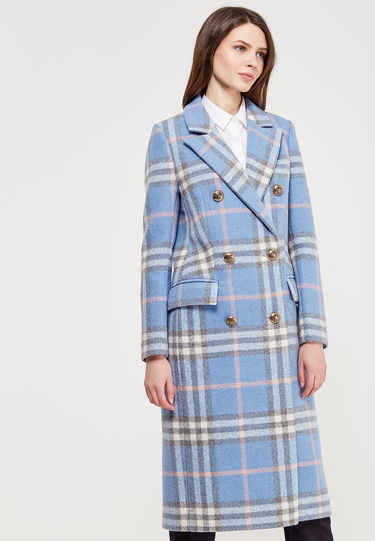 Пальто голубое в клетку 85 фото